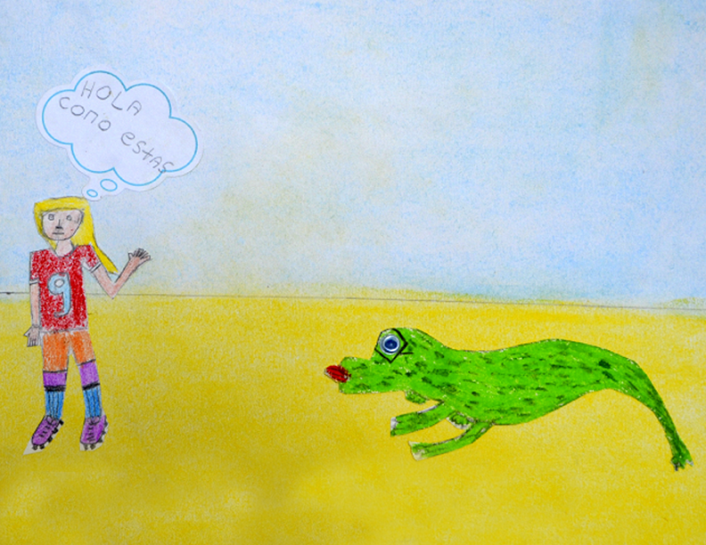 Había una vez, una niña que era discriminada por jugar fútbol. Un día iba caminando por la playa y se encontró un lagarto llamado Jorge, que también era discriminado por usar lentes y por tener una pata en la cola.